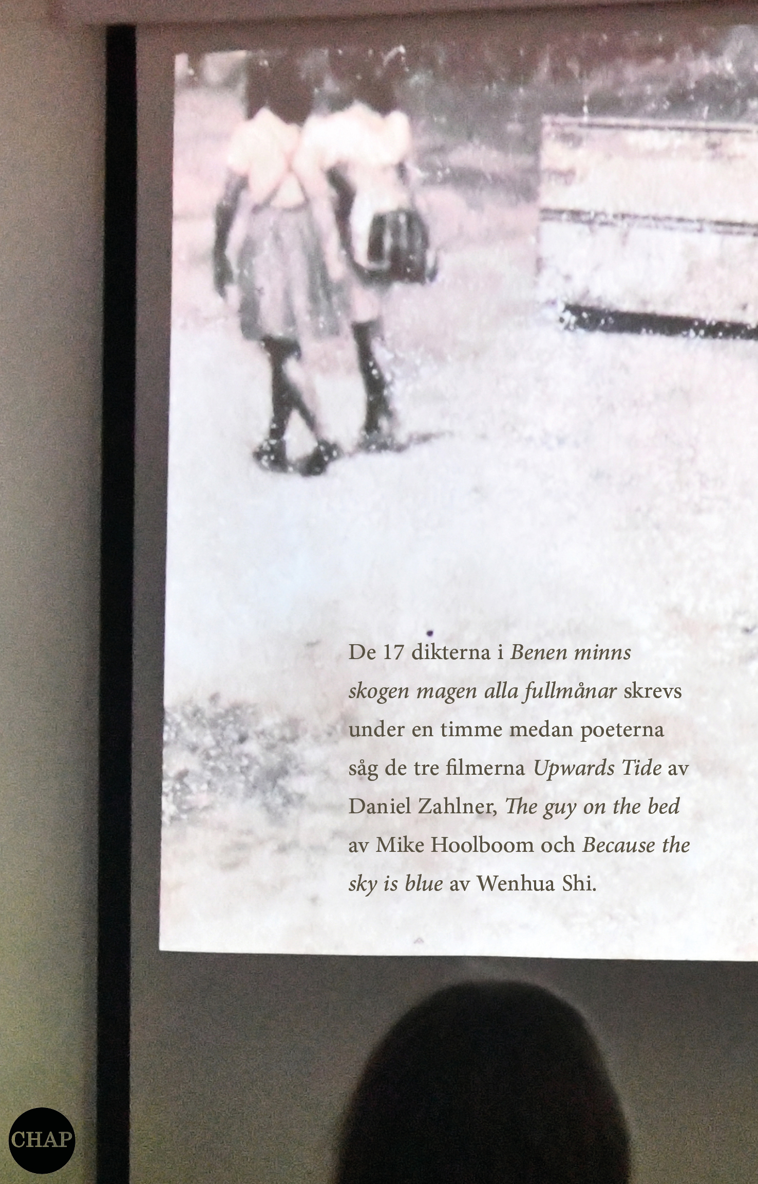 Idag fick jag besked om att antologin Benen minns skogen magen alla fullmånar finns just hade kommit från tryckeriet. Under en timme visade jag vid en workshop under Tranås at the fringe i somras tre filmer som ett gäng poeter fick reagera på. De tog hem sina dikter och bearbetade dem och skickade dem sedan till mig. Sammantaget finns 17 dikter i antologin. Den går att få tag på via Litteraturcentrum KVU och Kultivera.