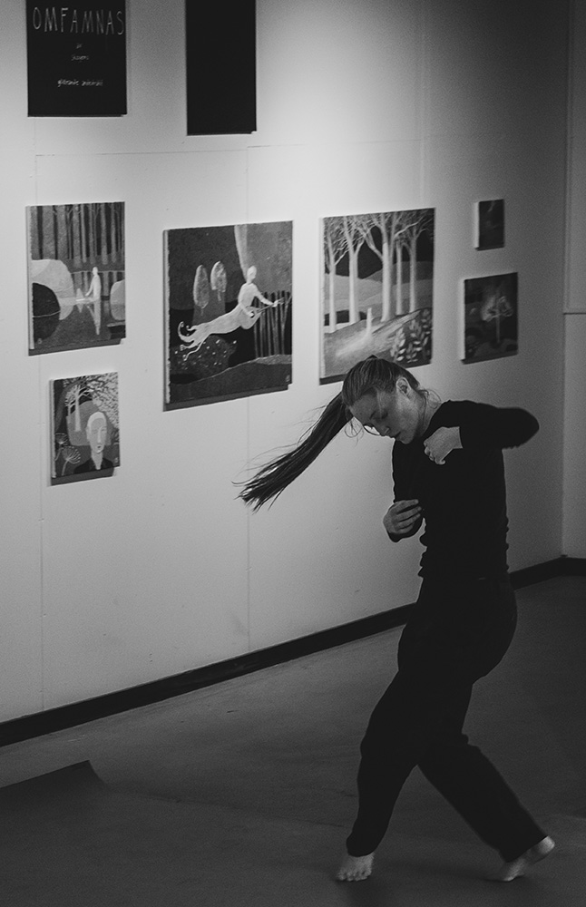 Åtta svartvita fotografier från Danskroki med Stina Nilsson
