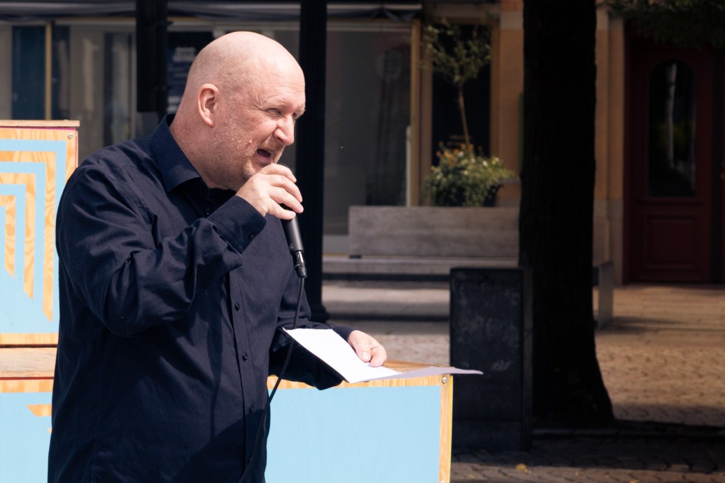 Under lördagen lyssnade jag på poeten Christer Boberg. Han framträdde på Hovrättstorget i Jönkping i projektet Poetens plats, som Jönköpings litteraturhus arrangerar. Det är ett utmärkt projekt där poeter får möta en allmänhet med sin poesi. Christer tillsammans med föregående Louise Halvardsson och Erik Nordström (25 augusti) tre utmärkta poeter för projektet.