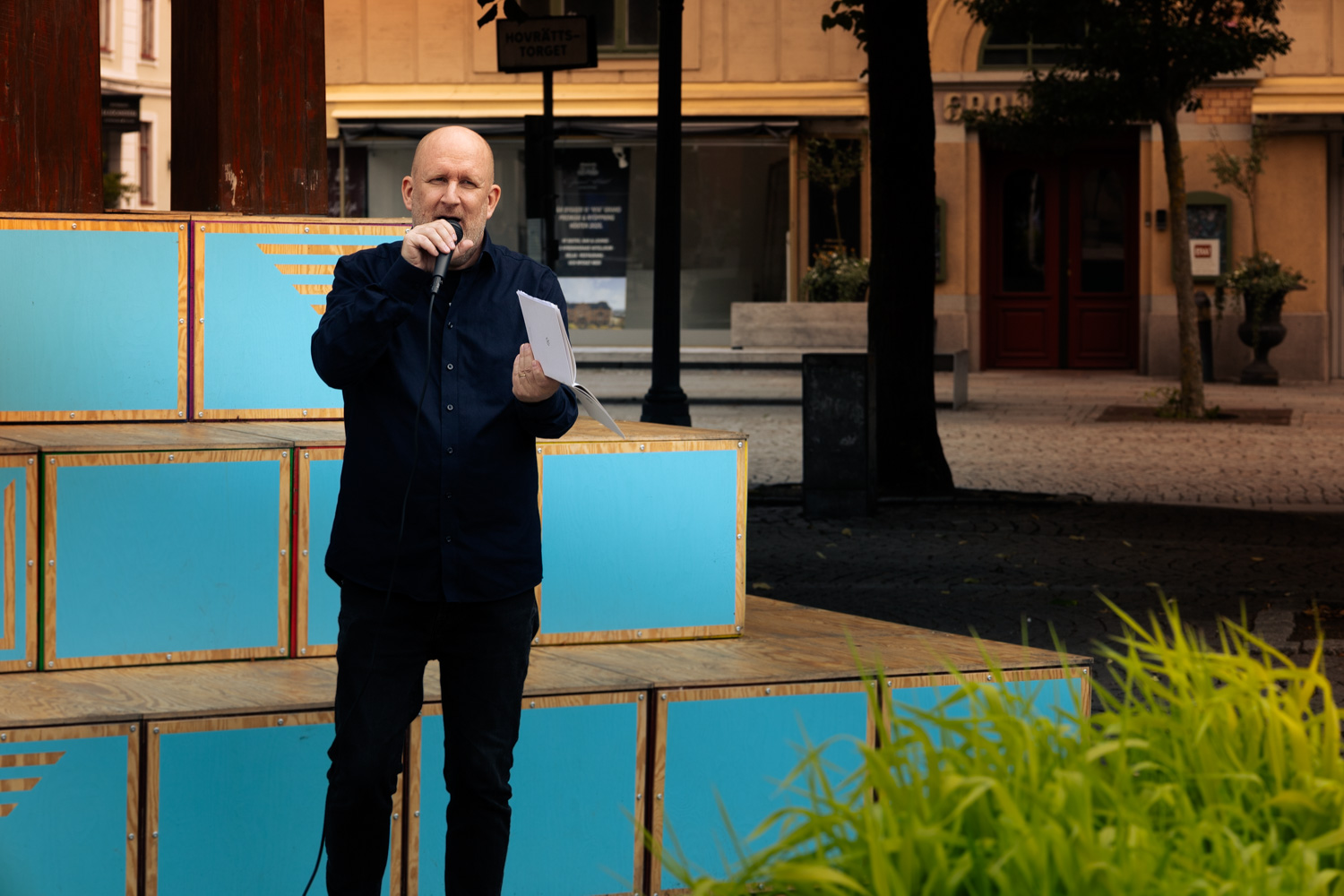 Under lördagen lyssnade jag på poeten Christer Boberg. Han framträdde på Hovrättstorget i Jönkping i projektet Poetens plats, som Jönköpings litteraturhus arrangerar. Det är ett utmärkt projekt där poeter får möta en allmänhet med sin poesi. Christer tillsammans med föregående Louise Halvardsson och Erik Nordström (25 augusti) tre utmärkta poeter för projektet.