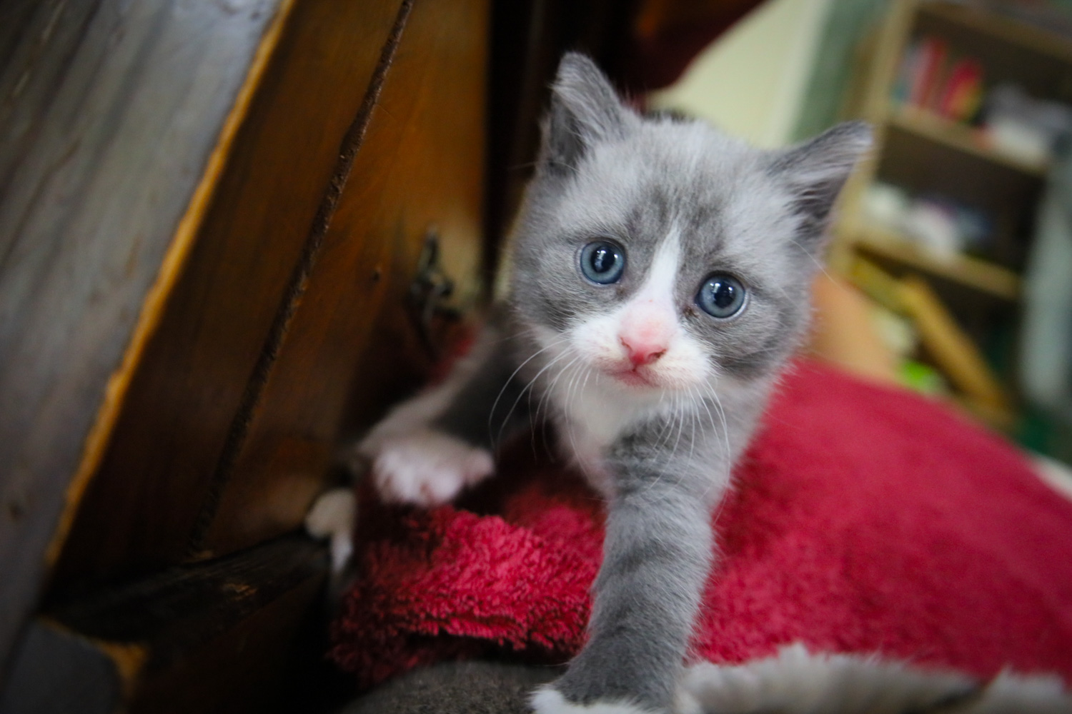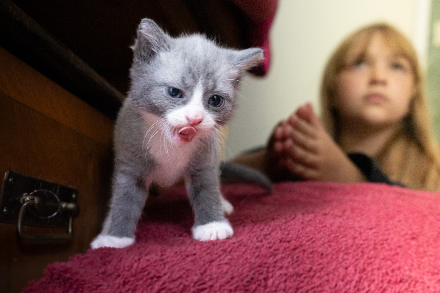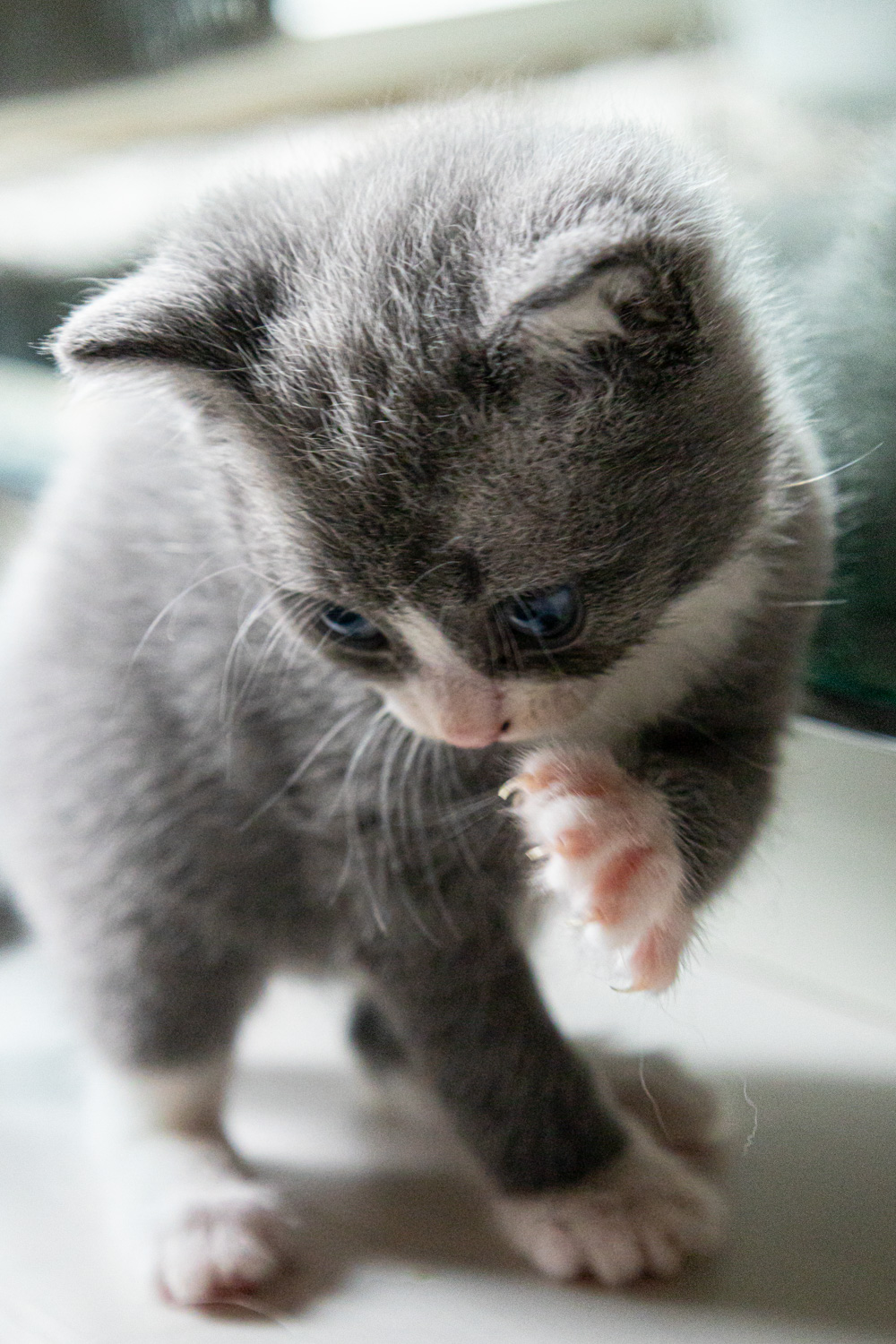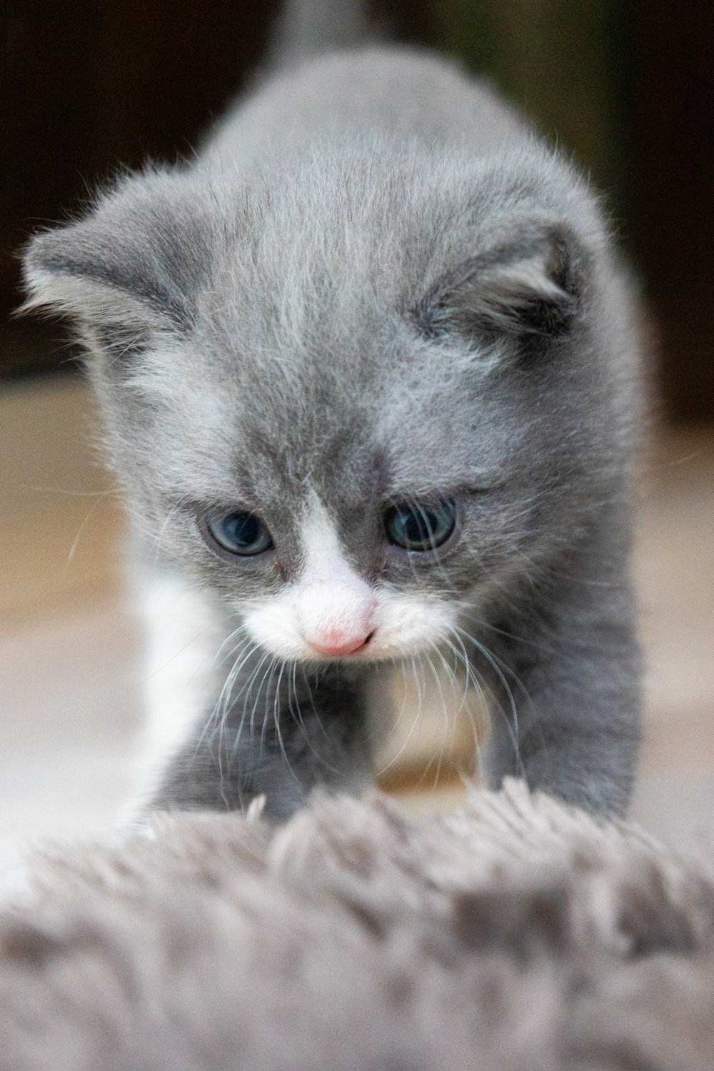 För några veckor sedan blev vi med kattungar. De var ganska äckliga från början och har sedan dess utvecklat sin vidrighet till fullo. Häromdagen kravlade de sig över kanten på sin födslolåda och nu springer de omkring över hela sovrumsgolvet. Vi går mycket försiktigt när vi måste om natten.