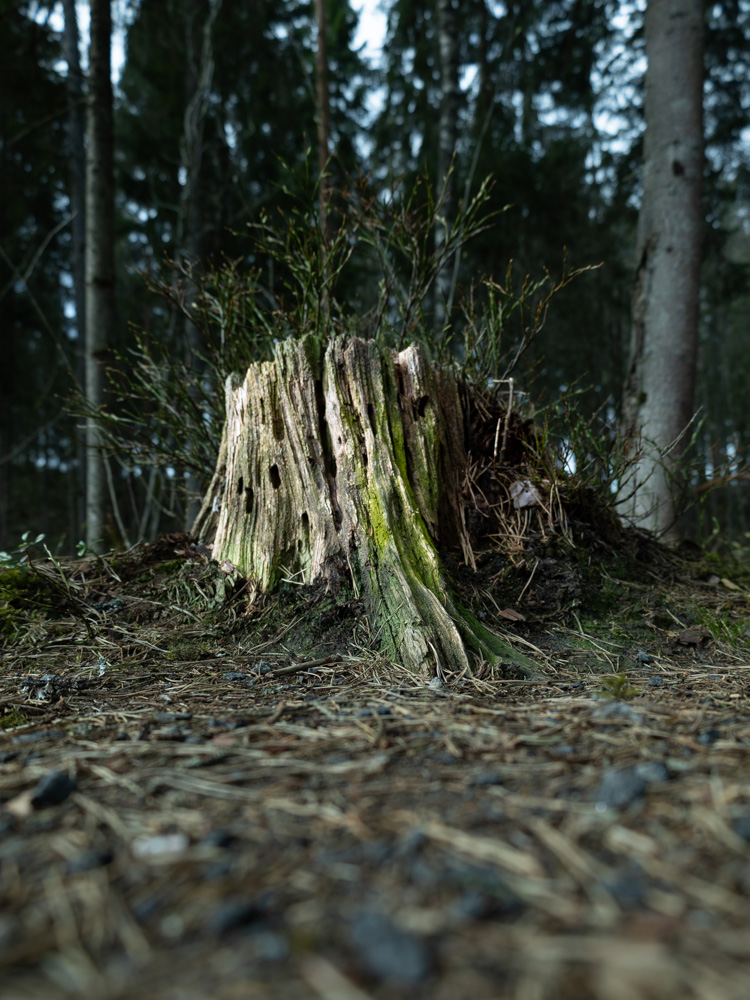 Promenerar en stund i solen innan eftermiddagens hagelskur. Slutet av april. Den svenska naturliga skönheten håller på att vakna, slå ut. Om några veckor kommer skogen att vara grön. Jag tar mina bilder. Jag vårdar mig. Det blir såhär: